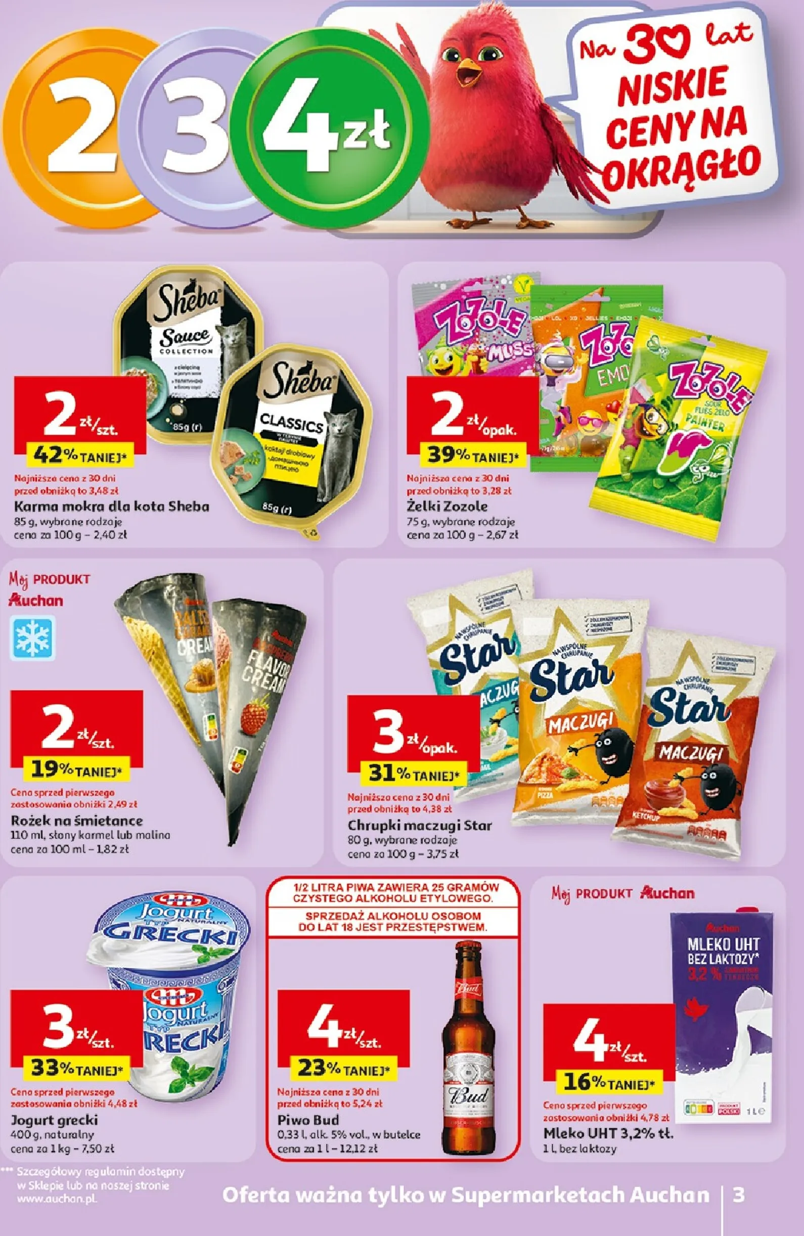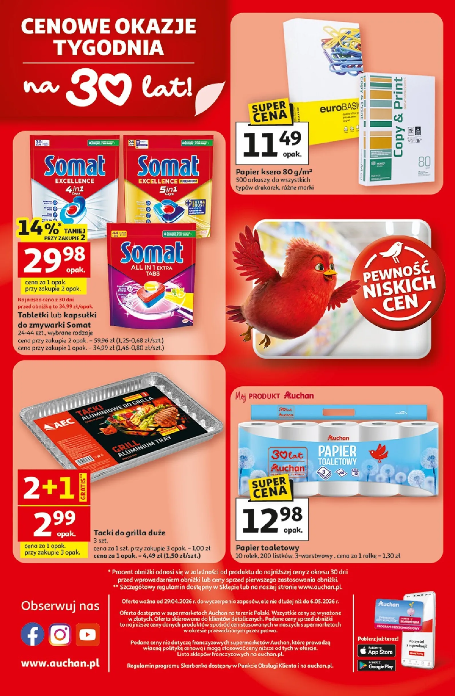 Przygotuj się na niezwykłe promocje! Nowa Auchan Gazetka od 29.04.2026 zaprasza do świętowania 30-lecia sieci, oferując weekendowe przeboje cenowe. Już od środy możesz skorzystać z wyjątkowych okazji, które sprawią, że Twoje zakupy będą jeszcze bardziej udane. Ta gazetka w tym tygodniu to prawdziwa gratka dla łowców okazji, pełna atrakcyjnych ofert na produkty spożywcze i artykuły codziennego użytku.