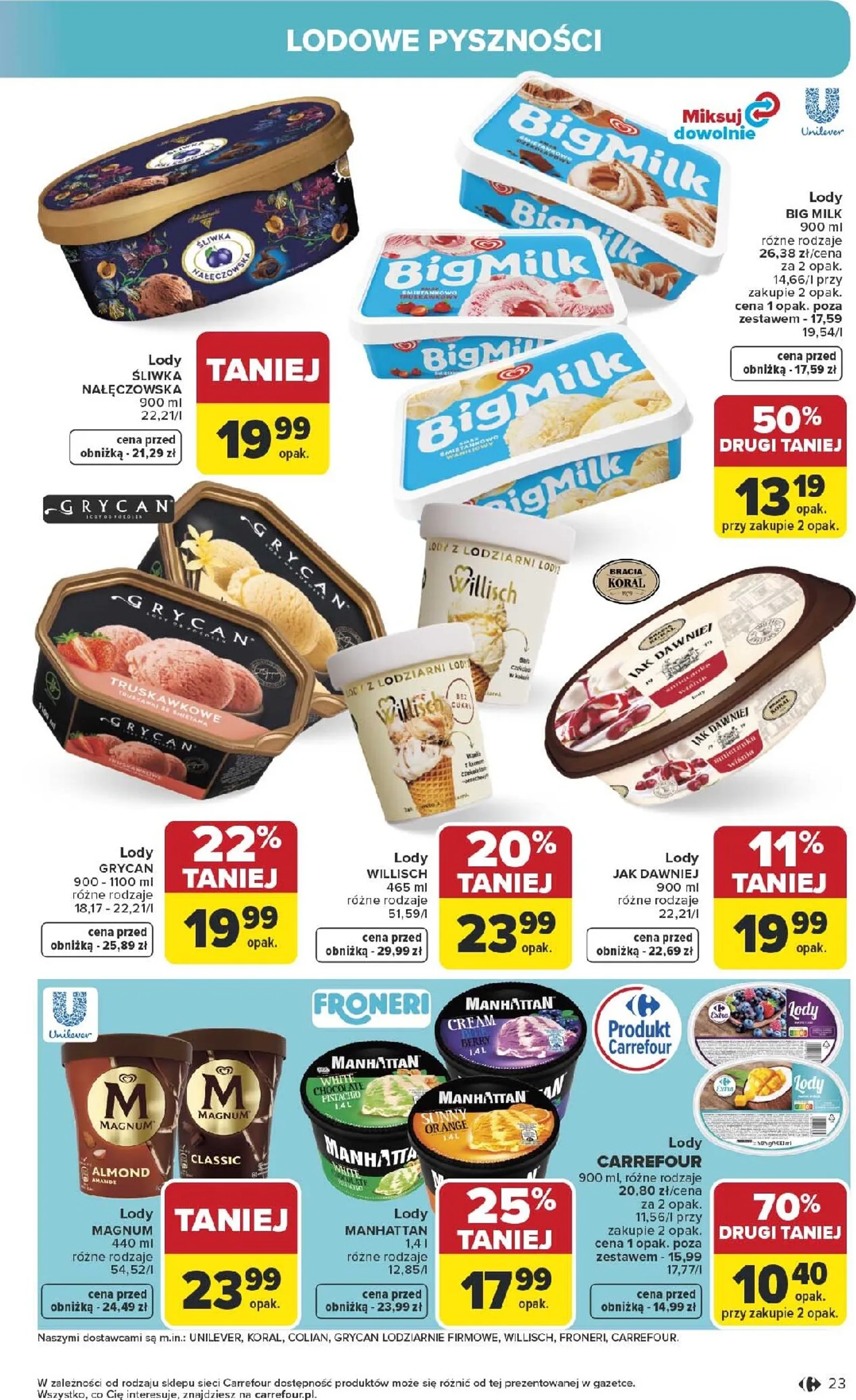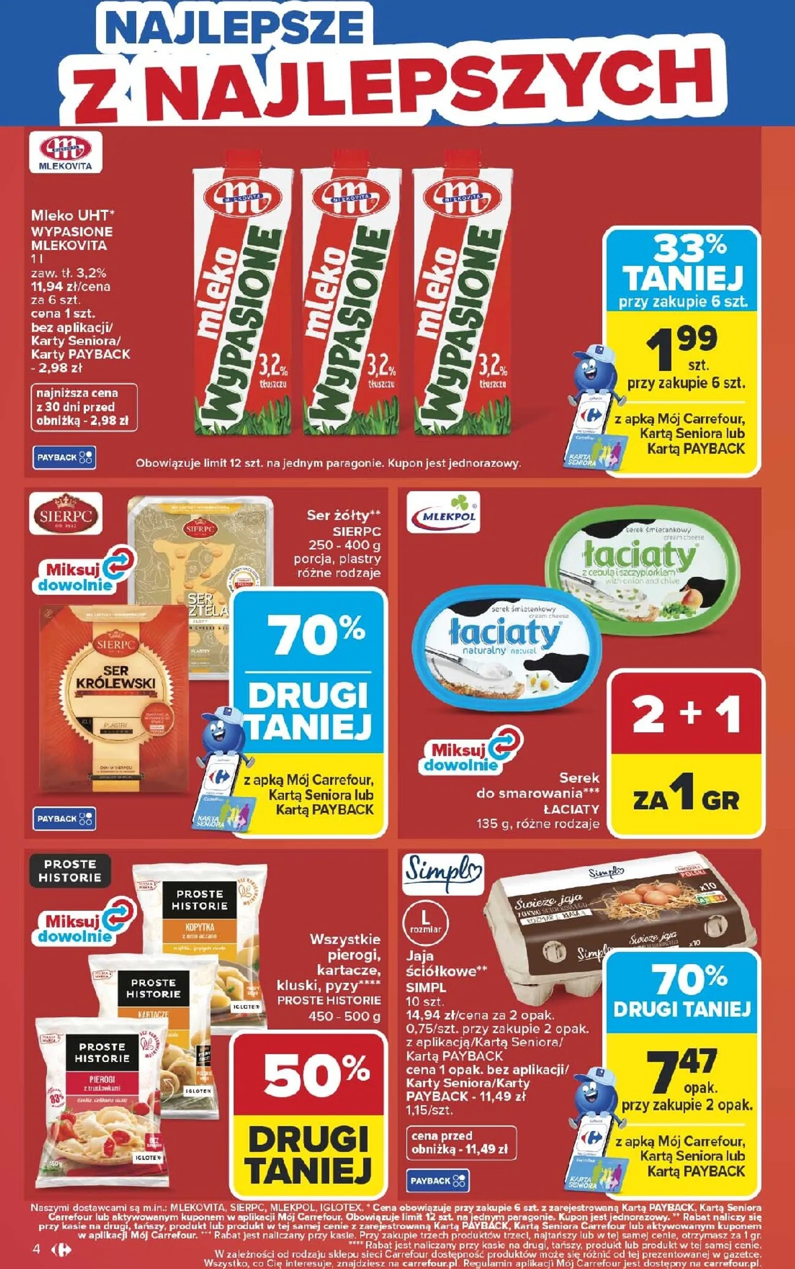 Carrefour dba o swoich klientów, oferując jeszcze więcej korzyści. Lody rodzinne Carte D'Or o pojemności 825-1000 ml to prawdziwa gratka dla miłośników słodkości – kosztują tylko 14,46 zł z Kartą PAYBACK lub Kartą Seniora (cena bez karty: 26,29-31,87 zł). A jeśli planujesz imprezę, skorzystaj z promocji 10+10 GRATIS na piwa, również z użyciem karty. Dodatkowo, wszystkie ketchupy, musztardy i sosy grillowe objęte są promocją 3+1 GRATIS.