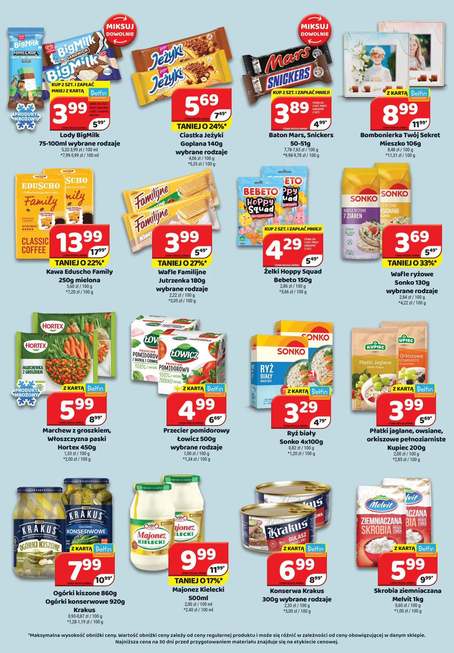 To tylko wybrane propozycje z szerokiej gamy produktów objętych promocją. Pełną ofertę znajdziesz, przeglądając Delfin Gazetka od 24.04.2026. Zaplanuj swoje zakupy i ciesz się oszczędnościami, korzystając z najnowszych okazji. Nie zwlekaj, promocje obowiązują do 3 maja 2026 roku lub do wyczerpania zapasów. Sprawdź wszystkie aktualne rabaty na stronie Delfin Gazetka.