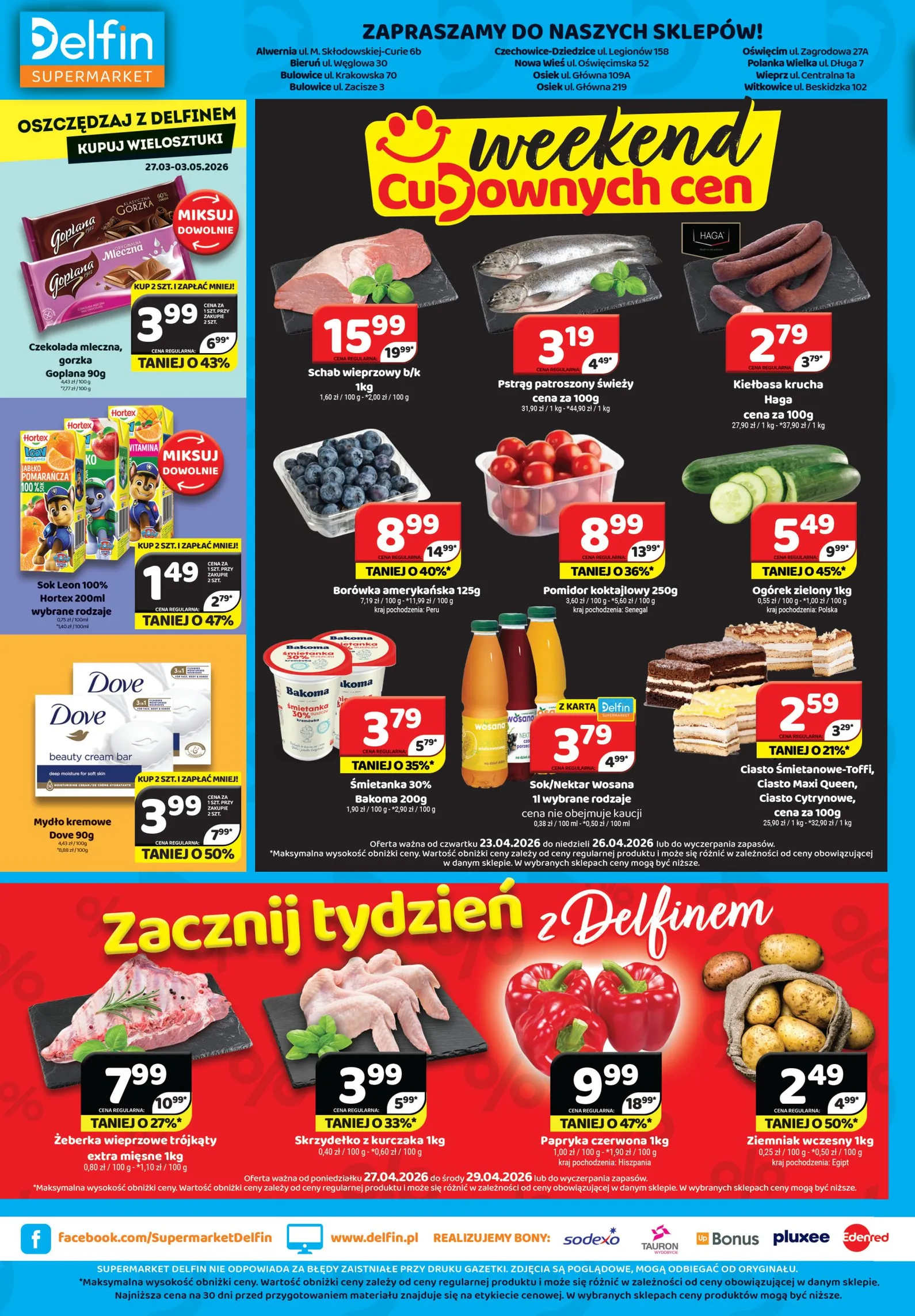 Przygotuj się na niezwykłe zakupy! Nowa Delfin Gazetka od 24.04.2026 przynosi mnóstwo atrakcyjnych ofert, które umilą codzienne gotowanie i pozwolą zaoszczędzić. Już od piątku, 24 kwietnia 2026 roku, możesz skorzystać z wyjątkowych promocji na szeroki asortyment produktów – od świeżych warzyw i owoców, po ulubione kawy i artykuły spożywcze. Nie przegap szansy na uzupełnienie swoich zapasów w supermarkecie Delfin!