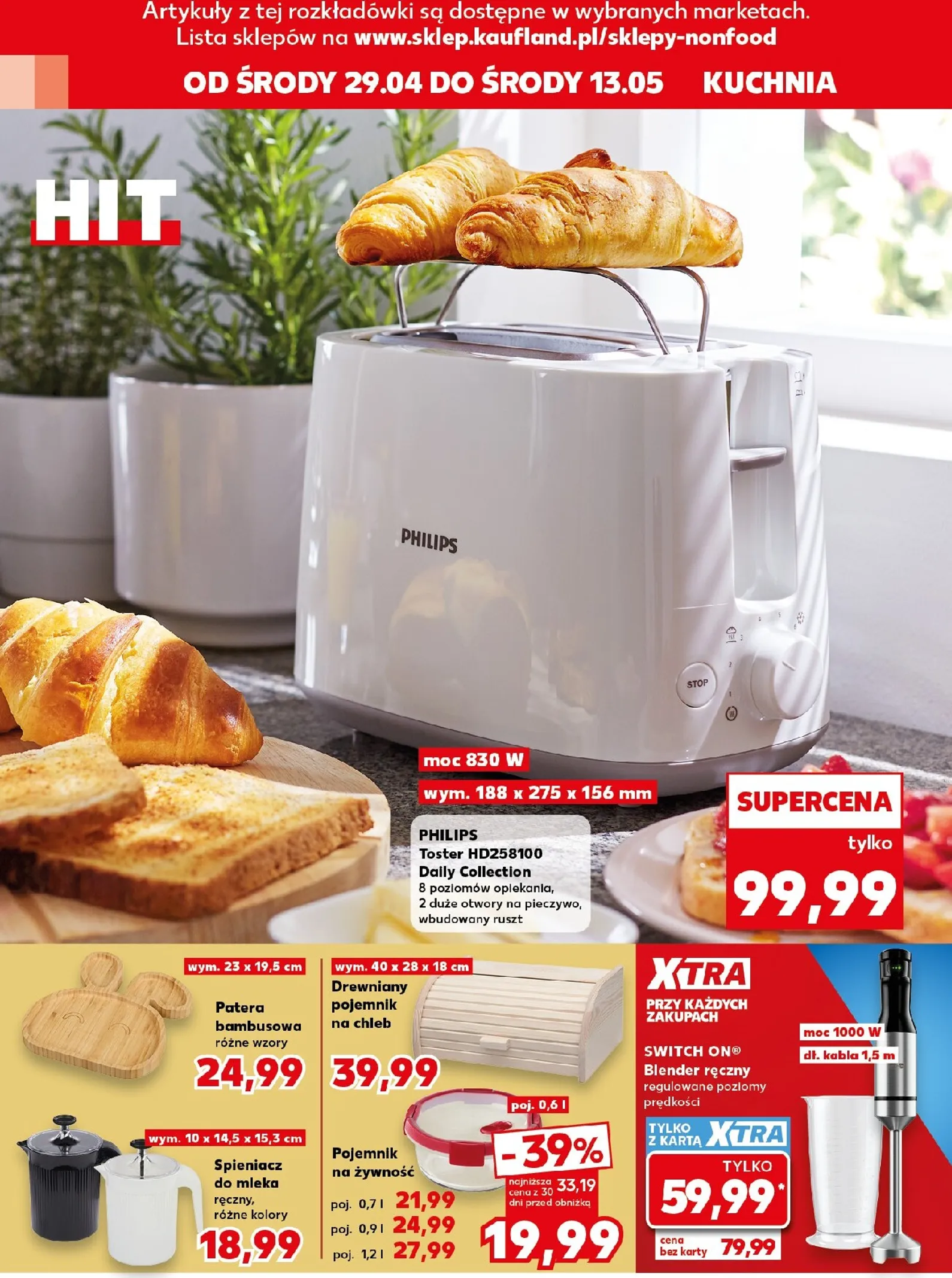 Nie przegap również czajnika elektrycznego Silvercrest o mocy 2400 W i pojemności 1,7 l, dostępnego w atrakcyjnej cenie 59,99 zł. To doskonała okazja, aby wyposażyć dom w wysokiej jakości sprzęt. Pełną ofertę i wszystkie szczegóły znajdziesz w najnowszej Kaufland Gazetka od 29.04.2026. Odwiedź najbliższy sklep i skorzystaj z wyjątkowych promocji! Kaufland Gazetka.