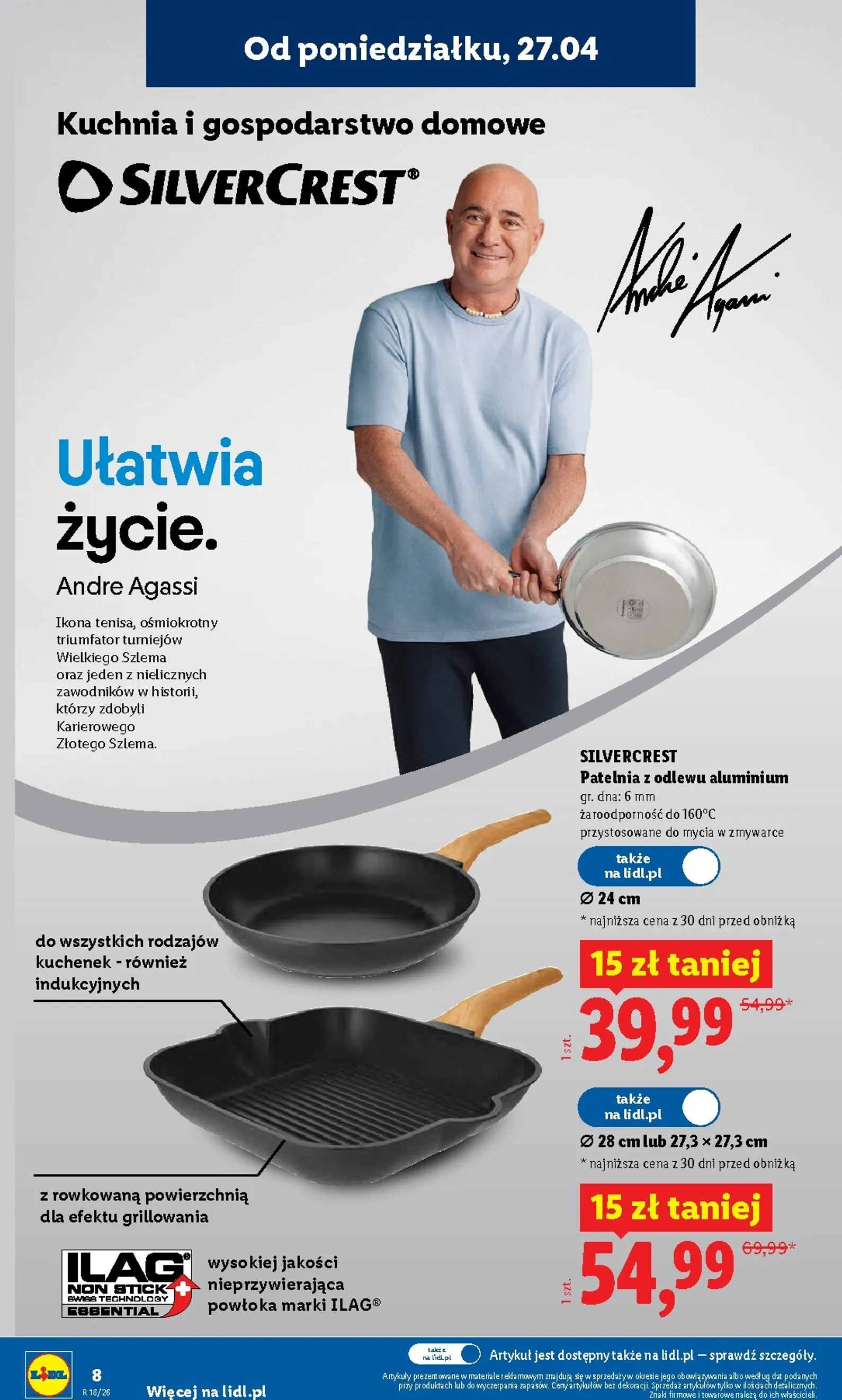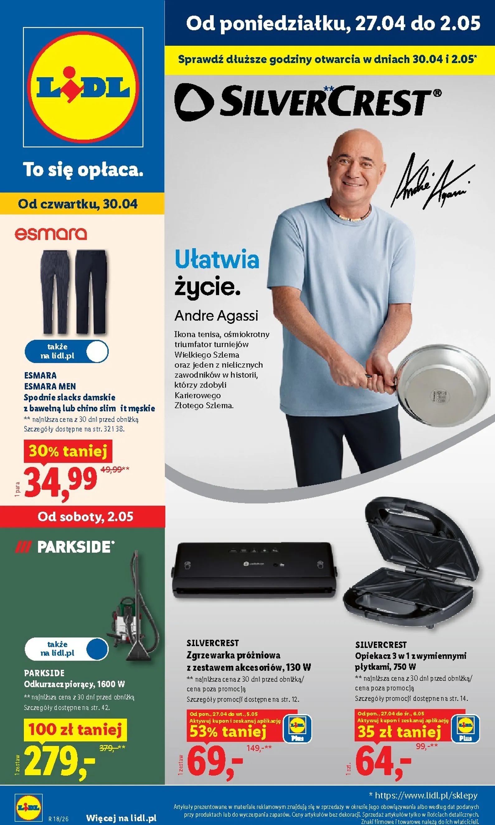 Najnowsza Lidl Gazetka od 27.04.2026 przynosi wyjątkowe promocje na ten tydzień, które ułatwią codzienne życie i odświeżą domowe wnętrza. Już od poniedziałku klienci mogą skorzystać z atrakcyjnych ofert, wśród których wyróżniają się produkty sygnowane nazwiskiem Andre Agassiego, idealne do kuchni i nie tylko. Lidl ponownie zaskakuje szerokim asortymentem, łączącym praktyczność z nowoczesnym designem.