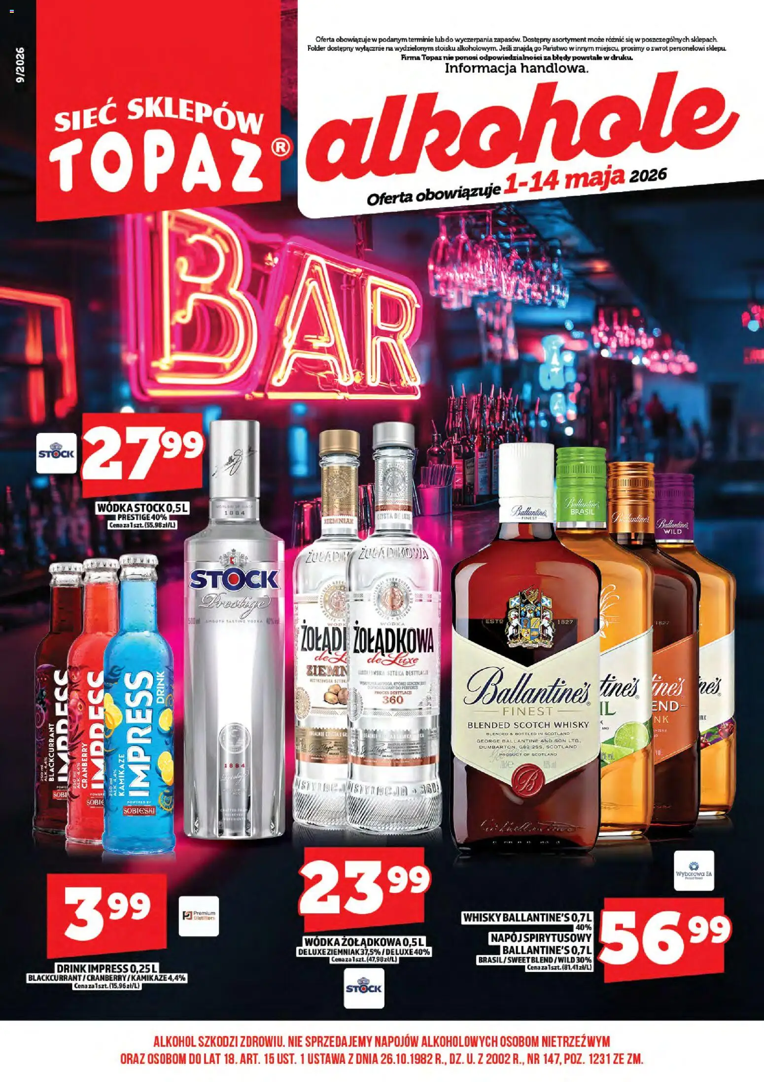 Przygotuj się na wyjątkowe promocje! Nowa Topaz Gazetka od 01.05.2026 przynosi świeże okazje, idealne na każdą okazję. Już od piątku, klienci mogą zapoznać się z atrakcyjnymi cenami na szeroki asortyment alkoholi. Ta gazetka w tym tygodniu skupia się na napojach dla dorosłych, dlatego też cała oferta jest skierowana wyłącznie do osób pełnoletnich, co wyraźnie zaznacza symbol +18.